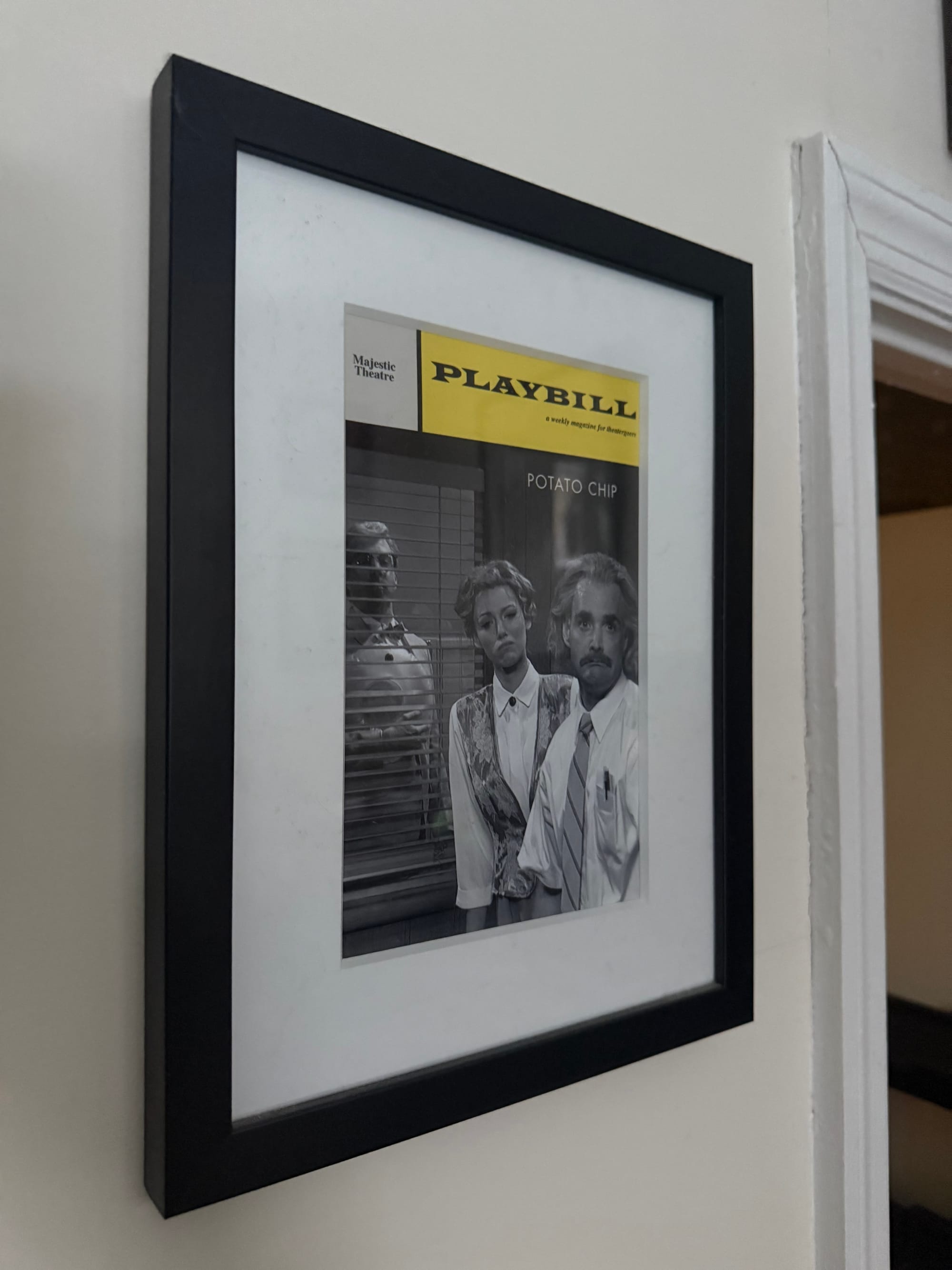 Jason Sudeikis, after discovering I was a huge fan of this sketch, tells me that after this particular show they had Playbills made to commemorate Potato Chip. He then mentions he has an extra and will send it to me. Now, this kind of statement is more common than you might think, and also almost never comes to fruition. I don't think it's phony, because in the moment people usually mean it. But then people get busy and finding and sending something like a mock-up of a Playbill seems less and less of a priority. A few weeks later I get a package in the mail from Jason. Not only did he send me the Potato Chip Playbill, he had it professionally framed. It currently resides on our wall.